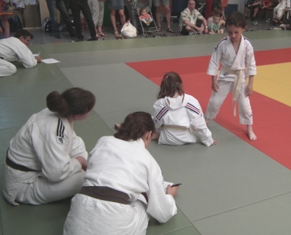 début de l'examen par les éléves du baby-judo